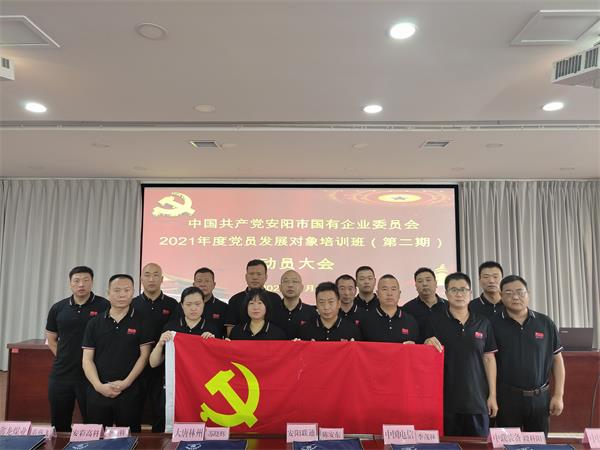 為加強對黨員發(fā)展對象的培養(yǎng)和教育,確保新發(fā)展黨員質量,保持黨組織的先進性和純潔性,按照市國企黨委的統(tǒng)一部署,2021年7月6日至9日,公司黨委組織2021年度第一批黨員發(fā)展對象張皓翔、白雪、張娜、劉桂斌、李敬波、王猛、郭海波、李衛(wèi)軍、張揚、張義群、張小晶、張博、楊中朝、王建海、李艷軍、石磊16名同志,參加中共安陽市國有企業(yè)委員會2021年度黨員發(fā)展對象培訓班(第二期)。7月5日下午3點,公司黨委副書記張錫軍主持召開專題會,會議要求此次參加培訓人員端正入黨動機、嚴格遵守紀律、注重自身安全、樹立良好形象,不辜負組織的培養(yǎng)和希望。