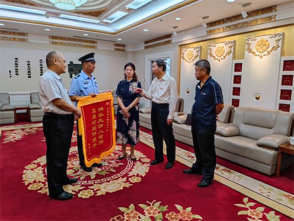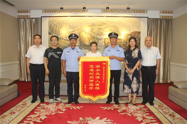 2021年7月28日下午3點,“感謝你們,我這條命是你們撿回來的!”安勤公司員工曹運玲拿著“洪水無情人有情,危難時刻伸援手”的錦旗在市黨政綜合大樓一樓會客室送到市黨政綜合樓保安中隊中隊長戶永豐手中,感謝他們的救命之恩。安陽市機關(guān)事務(wù)中心、三級調(diào)研員陳紹華,機關(guān)事務(wù)中心、保衛(wèi)科長孫文勝,安陽市安勤商務(wù)公司董事長兼總經(jīng)理劉全喜;安勤商務(wù)公司副總經(jīng)理王軍;安陽經(jīng)開集團(tuán)黨委委員、副總經(jīng)理劉志霞,公司黨委委員、副總經(jīng)理魏東,總經(jīng)理助理、人防分公司經(jīng)理李向陽,參加此次活動。