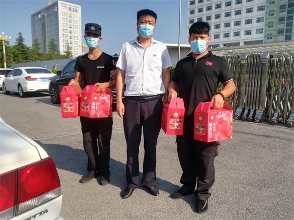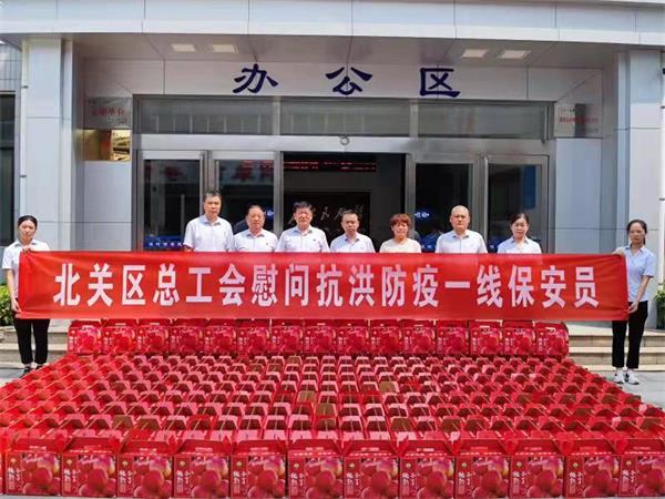 8月9日、10日北關(guān)區(qū)總工會(huì)副主席薛梅、保障部部長司尚雯來到公司,送來抗洪防疫慰問品鮮桃500多箱,向堅(jiān)守崗位、奮戰(zhàn)一線的保安隊(duì)員進(jìn)行慰問,提醒大家做好防控工作的同時(shí)一定要做好自身防護(hù)。