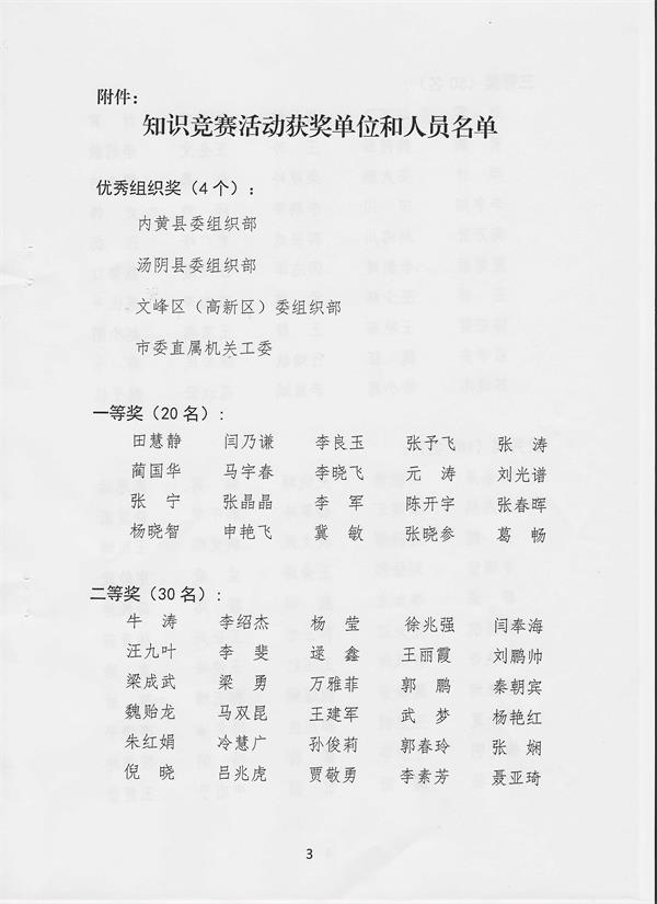 9月10日,市委組織部對(duì)活動(dòng)獲獎(jiǎng)單位和人員名單進(jìn)行了通報(bào)表?yè)P(yáng),并發(fā)放了榮譽(yù)證書和新華書店購(gòu)書券,公司8名同志名類前茅,他們分別是:
