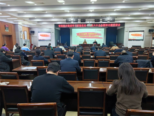12月14日上午,安陽(yáng)經(jīng)開(kāi)集團(tuán)召開(kāi)學(xué)習(xí)貫徹黨的十九屆六中全會(huì)精神專(zhuān)題宣講會(huì),深入學(xué)習(xí)貫徹習(xí)近平總書(shū)記在黨的十九屆六中全會(huì)上的重要講話(huà)精神和《中共中央關(guān)于黨的百年奮斗重大成就和歷史經(jīng)驗(yàn)的決議》,特邀請(qǐng)中共安陽(yáng)市委黨史學(xué)習(xí)教育宣講團(tuán)成員、安陽(yáng)學(xué)院黨委委員、宣傳部部長(zhǎng)姚林茹進(jìn)行授課,會(huì)議由經(jīng)開(kāi)集團(tuán)黨委委員、副總經(jīng)理劉志霞主持。洹河保安公司黨委副書(shū)記張錫軍帶隊(duì),組織公司15名黨員干部參加學(xué)習(xí)。