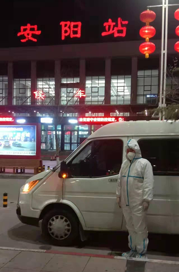 按照上級工作安排,要求學(xué)校安排車輛,用于接送醫(yī)護(hù)人員到社區(qū)、村委隔離點(diǎn)進(jìn)行核酸檢測,從火車站接中高風(fēng)險區(qū)返安人員到集中隔離點(diǎn)隔離,接送解除隔離的群眾回家。任務(wù)不僅風(fēng)險大,而且非常繁重。他向上級保證堅決完成任務(wù)。為確保任務(wù)完成安全、有序,他安排楊福財、許慶軍一同完成。自1月10日以來,他們不分晝夜已先后出車20余次。21日,一場大雪降臨安陽,濕滑的路面給他們的工作帶來極大難度,車輛在路面上打著滑,時不時向路邊滑去,為完成任務(wù),周衛(wèi)國、楊福財保持高度警惕,楊福財手握方向盤,小心翼翼準(zhǔn)時將車開到火車站、隔離區(qū),把中高風(fēng)險區(qū)返安人員送到集中隔離點(diǎn)隔離,又將解除隔離的群眾接送到家中。