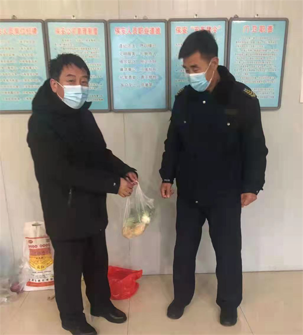 1月10日,因為疫情防控,公務(wù)倉的兩名隊員被隔離在崗位上。中隊長程永明得知情況后很是擔(dān)心隊員們的生活,害怕隊員們?nèi)甜嚢ゐI,于是他連夜從家中拿些生活用品送到公務(wù)倉崗點隊員手中,囑咐他們安心工作。隨后的日子里程永明定時把生活用品送到崗點,隊員們看到領(lǐng)導(dǎo)的關(guān)心,非常感動,他們表示讓分公司領(lǐng)導(dǎo)放心,一定保護(hù)好客戶的財產(chǎn)安全。