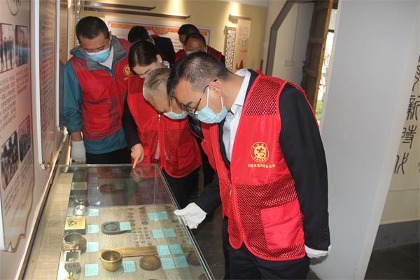 志愿活動(dòng)結(jié)束后,王高峰帶領(lǐng)全體志愿者們參觀了北花村黨史館、村史館、古炮樓和其他文明單位援建的項(xiàng)目,通過(guò)文字、圖片、實(shí)物等方式,結(jié)合老地圖、老物件生動(dòng)展示了北花村的歷史變遷、風(fēng)土人情和動(dòng)人故事。