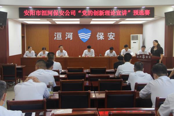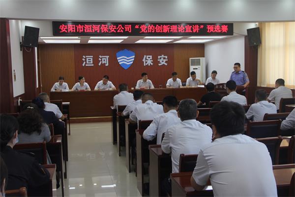 為深入學(xué)習(xí)貫徹習(xí)近平新時(shí)代中國特色社會(huì)主義思想和黨的十九大及歷次全會(huì)精神,推動(dòng)黨的創(chuàng)新理論入腦入心,團(tuán)結(jié)引領(lǐng)廣大職工堅(jiān)定跟黨走、建功新時(shí)代,激勵(lì)全體洹河保安人以更加昂揚(yáng)的精神狀態(tài)迎接黨的二十大勝利召開,2022年5月19日下午,公司黨委舉辦“黨的創(chuàng)新理論宣講”預(yù)選賽,黨委書記、董事長、總經(jīng)理王高峰,黨委委員、副總經(jīng)理魏東到會(huì)觀摩,比賽由黨委副書記張錫軍主持。