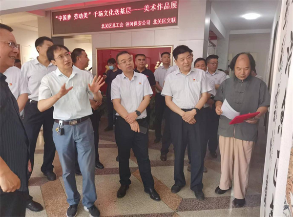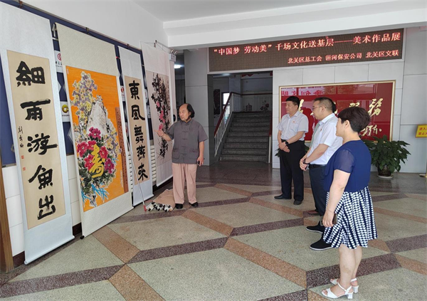 6月16日上午,由公司與安陽市北關(guān)區(qū)總工會、北關(guān)區(qū)文聯(lián)共同承辦為期三天的“中國夢·勞動美 千場文化送基層—喜迎二十大 丹青繪北關(guān)”美術(shù)作品展,在公司辦公樓一樓大廳開展。北關(guān)區(qū)總工會主席劉保國,副主席薛梅、杜新芹,北關(guān)區(qū)文聯(lián)負責人賈海平,公司黨委書記、董事長、總經(jīng)理王高峰,黨委副書記、工會主席張錫軍,黨委委員、副總經(jīng)理魏東等領(lǐng)導(dǎo)以及公司機關(guān)全體人員參加了開幕式。開幕式由北關(guān)區(qū)政協(xié)委員、區(qū)美協(xié)主席程文鳴同志主持。