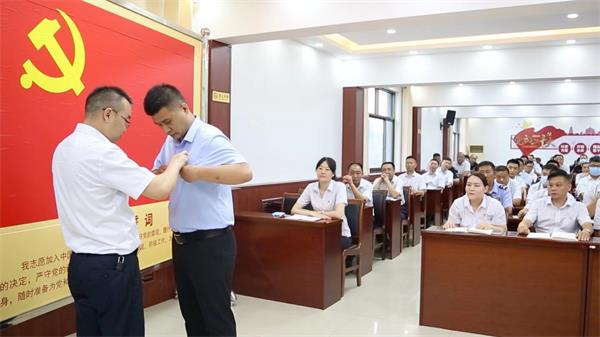 大會(huì)首先舉行預(yù)備黨員佩戴黨徽儀式,王高峰同志向新黨員同志表示祝賀,親手為2022年度預(yù)備黨員代表佩戴黨徽,希望新同志不辜負(fù)黨組織的期望,無(wú)愧于共產(chǎn)黨員的光榮稱號(hào)。