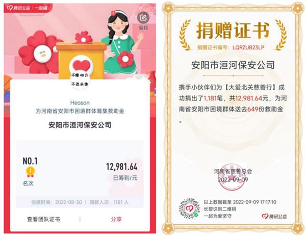 涓涓細(xì)流匯江海,點(diǎn)滴善舉鑄大愛(ài)。伴隨著一份份珍貴的愛(ài)心在微信群刷屏,洹河保安公司職工在活動(dòng)期間參與人數(shù)達(dá)1181人次,共籌得愛(ài)心捐款12981.64元,以實(shí)際行動(dòng)發(fā)揮國(guó)有企業(yè)的示范引領(lǐng)作用,為慈善事業(yè)發(fā)展貢獻(xiàn)力量。
