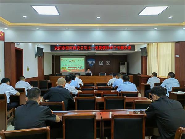 黨課上,孫國濤同志圍繞黨的基本知識、黨的光輝歷史、建黨102周年以來的成就、弘揚(yáng)建黨精神四個方面展開講授。他強(qiáng)調(diào),全體黨員干部要繼續(xù)弘揚(yáng)光榮傳統(tǒng)、賡續(xù)紅色血脈,把偉大建黨精神繼承下去、發(fā)揚(yáng)光大;要在弘揚(yáng)偉大建黨精神中,進(jìn)一步強(qiáng)化責(zé)任擔(dān)當(dāng),做到擔(dān)當(dāng)實干,奮勇爭先;要緊扣高質(zhì)量發(fā)展的時代主題,把黨建與業(yè)務(wù)高度融合,全面拓寬業(yè)務(wù)增長新思路、新方法,持續(xù)提升保安品牌競爭力。