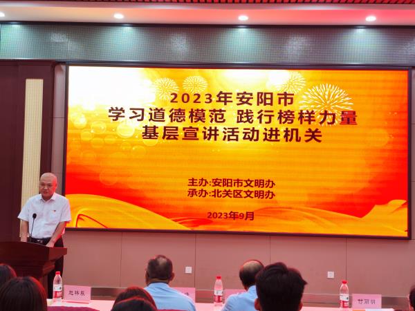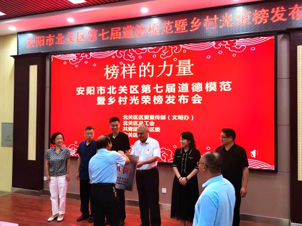 9月15日上午,北關(guān)區(qū)舉行道德模范、鄉(xiāng)村光榮榜發(fā)布會(huì)、省級文明單位頒牌儀式。北關(guān)區(qū)委常委、宣傳部長、副區(qū)長王洪忠,宣傳部副部長、文明辦主任郭玉峰出席活動(dòng),并為榮獲2023年度省級文明單位榮譽(yù)稱號的相關(guān)單位授牌。公司總經(jīng)理魏東作為河南省文明單位代表參加授牌儀式并發(fā)言。