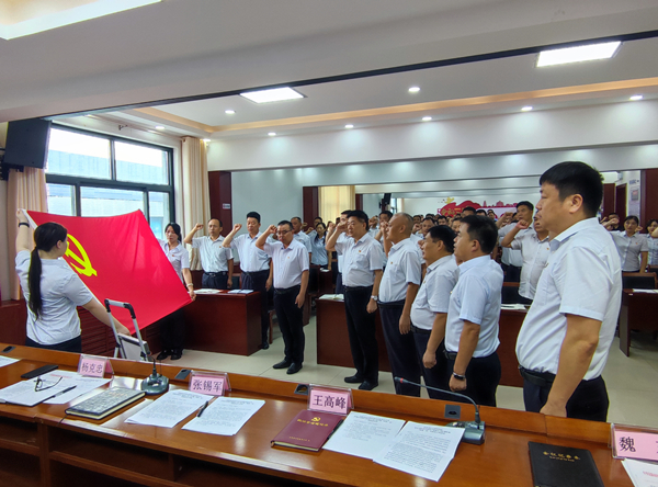 在王高峰同志帶領(lǐng)下,面對(duì)鮮紅的中國(guó)共產(chǎn)黨黨旗,16名新黨員舉起右拳、莊嚴(yán)宣誓,許下錚錚誓言。全體老黨員一同重溫入黨誓詞,時(shí)刻不忘自己的政治身份,無(wú)愧于共產(chǎn)黨員的光榮稱(chēng)號(hào)。