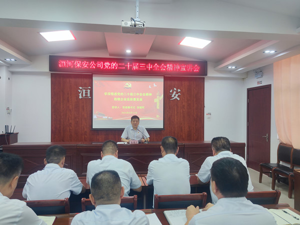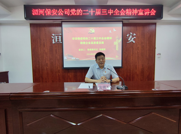 宣講會(huì)上,張錫軍從深刻認(rèn)識(shí)黨的二十屆三中全會(huì)的重大意義、準(zhǔn)確把握黨的二十屆三中全會(huì)的主要內(nèi)容和精神實(shí)質(zhì) 、強(qiáng)化保安工作與全會(huì)精神的深度融合、深入貫徹全會(huì)精神開(kāi)創(chuàng)工作新局面、以全會(huì)精神為引領(lǐng)推動(dòng)企業(yè)高質(zhì)量發(fā)展等方面,結(jié)合保安企業(yè)改革發(fā)展,為黨員干部帶來(lái)了一場(chǎng)精彩生動(dòng)、內(nèi)容豐富的專題宣講。