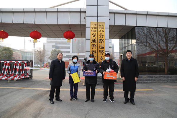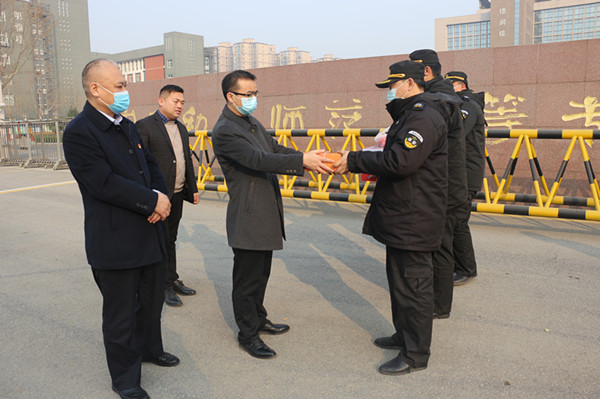 隨后,公司領(lǐng)導分成三組先后到人防安陽幼師、龍安區(qū)政府崗點,守押六大隊、守押十大隊駐地,特保大隊開發(fā)區(qū)巡防駐地、中國文字博物館崗點,鼎誠物業(yè)海興御花園、交警支隊項目部,藍盾駕校、鼎信公司,對堅守在工作崗位的員工進行了慰問。
