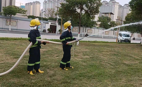 隨后,特保隊(duì)員現(xiàn)場進(jìn)行了處置火險(xiǎn)演練。演練過程中,隊(duì)員按照預(yù)案,發(fā)現(xiàn)初期火險(xiǎn)后,立即組織人員疏散,穿上防火衣,拿起消防帶,打開閥門,放水滅火,同時(shí)實(shí)施報(bào)警……