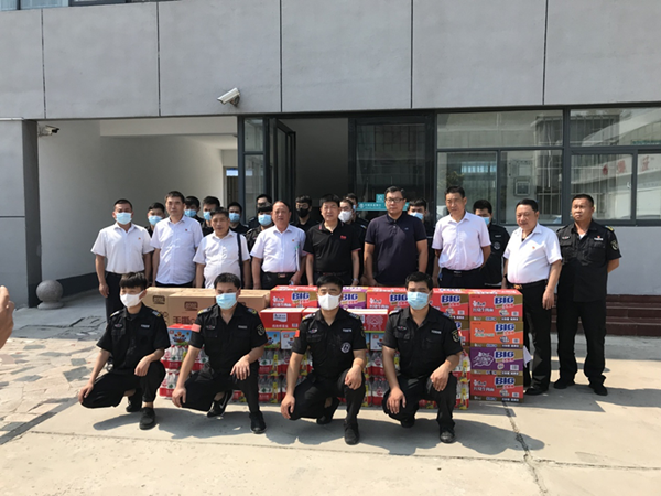 2021年8月3日早上,公司領導張錫軍、岳子迪、高代獻、楊克忠、張合印、劉東杰等走訪慰問守押九大隊全體干部職工,并送來了方便面、火腿腸、面包、榨菜、礦泉水等物資,并向大家致以誠摯的問候,對在一線隊員表示慰問,對守押九大隊積極應對特大暴雨的部署和行動表示肯定,詳細了解大隊的防汛搶險和一線隊員生活保障情況,叮囑隊員在確保自身安全的前提下,秉承生命至上的宗旨,壓實責任,堅持值守,繼續(xù)發(fā)揚不怕吃苦,艱苦奮斗,勇于擔當的精神,做好防汛工作,隱患排查整改工作,確保槍支彈藥、車輛、金庫的安全。