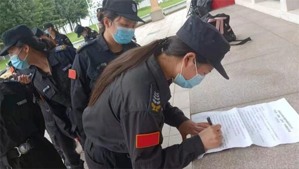 特保大隊(duì)中國(guó)文字博物館中隊(duì)在中隊(duì)長(zhǎng)馮鑫江的組織下,當(dāng)天各班交接班時(shí)將專項(xiàng)整治活動(dòng)精神傳達(dá)到每一名隊(duì)員,認(rèn)真宣讀公司“公開信”內(nèi)容,組織每名隊(duì)員在“公開信”上簽字。