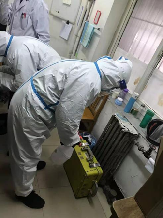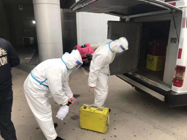 演練中,大隊(duì)模擬接到中國(guó)銀行通知,需要到人民醫(yī)院接收錢(qián)款勤務(wù)。大隊(duì)出勤人員首先進(jìn)行消毒穿戴防護(hù)服,完成消毒程序后車(chē)輛出車(chē),到達(dá)人民醫(yī)院和銀行工作人員嚴(yán)格按照消毒程序?qū)钕溥M(jìn)行交接,隨后將款箱押至規(guī)定地點(diǎn),車(chē)輛回隊(duì)后再按照程序進(jìn)行消毒交接。
