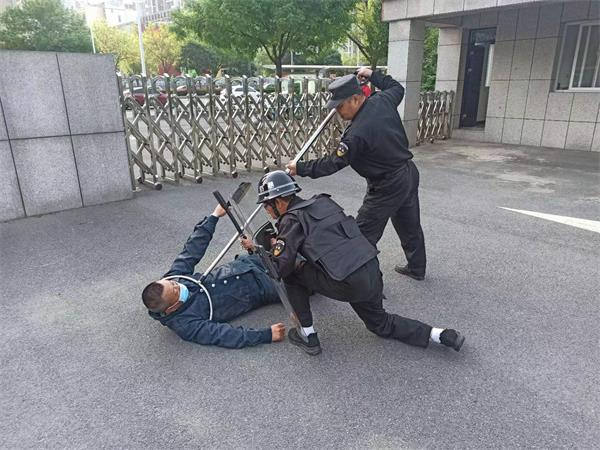 為做好這次防恐預(yù)案演練,人防一大隊(duì)領(lǐng)導(dǎo)和郵局保安班隊(duì)員一起,對(duì)預(yù)案方案進(jìn)行了細(xì)化,從場(chǎng)景設(shè)置到人員安排,從道具準(zhǔn)備到過(guò)程節(jié)點(diǎn)把握都做了詳細(xì)安排和部署。4月13號(hào)上午8點(diǎn),郵局保安班一場(chǎng)外來(lái)人員到郵局機(jī)關(guān)大院鬧事防恐演練開(kāi)始,保安員正在值班中間,從外面進(jìn)來(lái)兩名陌生人員想進(jìn)入大院,其中一名保安隊(duì)員上前詢(xún)問(wèn)兩名陌生人員辦什么事,兩名陌生人員突然從身上掏出兇器,就要強(qiáng)行闖卡。保安見(jiàn)情況不妙,馬上用對(duì)講機(jī)呼喊隊(duì)員帶防爆器材過(guò)來(lái),這期間,這兩名陌生人員拿著兇器在門(mén)口鬧事,保安隊(duì)員又及時(shí)打電話通知保衛(wèi)科,讓各科室把門(mén)鎖好以防進(jìn)入樓層。兩名保安帶著防爆叉以及盾牌阻止陌生人員違法行為,經(jīng)過(guò)一番搏斗,終于制服了兩名陌生人員,然后向公安機(jī)構(gòu)報(bào)警。