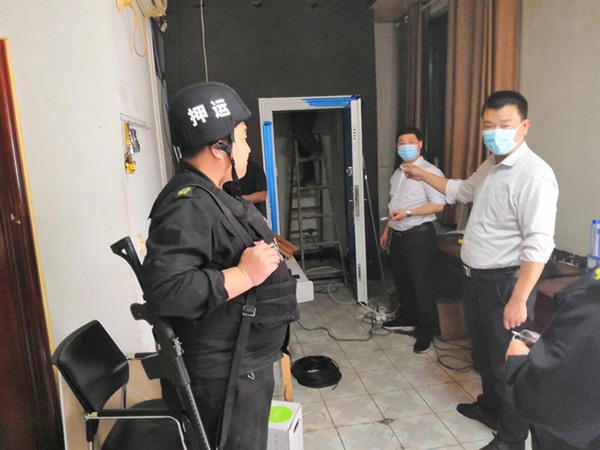 在改造過(guò)程中,大隊(duì)長(zhǎng)楊中朝多次召開守庫(kù)工作例會(huì),要求林州農(nóng)商銀行金庫(kù)隊(duì)員做好金庫(kù)施工中的安全工作。在施工中,大隊(duì)安排專人專門負(fù)責(zé)協(xié)調(diào)在金庫(kù)改造期間出現(xiàn)的施工問(wèn)題,守庫(kù)員全副武裝做好金庫(kù)的安全警戒工作。