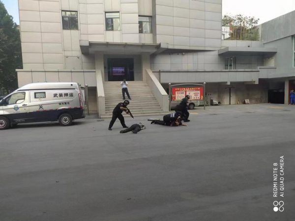 為切實(shí)做好武裝守押人員、金庫工作人員對(duì)突發(fā)事件預(yù)防和應(yīng)急處置救援工作. 6月17日下午,守押五大隊(duì)聯(lián)合建設(shè)銀行安陽分行,開展了消防、防搶劫綜合演練。