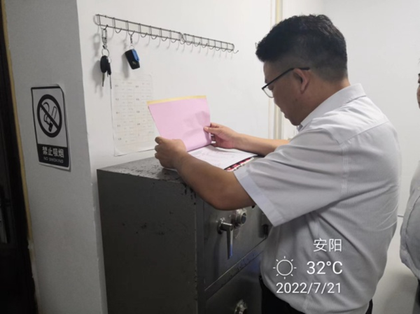 分公司領(lǐng)導(dǎo)張新平、韋洪東分別深入到七大隊(duì)的臨淇、建行、農(nóng)商行等中隊(duì)進(jìn)行了工作檢查,在檢查中,他們統(tǒng)一檢查了各中隊(duì)的日常臺賬、車輛、守庫室等,詳細(xì)查看了隊(duì)員的學(xué)習(xí)記錄,查看了今年公司“以案促改、鄭州7.20災(zāi)害追責(zé)和能力作風(fēng)建設(shè)年”等方案的開展和轉(zhuǎn)段學(xué)習(xí)情況,檢查了防疫情況登記。在守庫室,不但查看了守庫室的各項(xiàng)設(shè)備及衛(wèi)生情況,還查看了押運(yùn)登記本和槍支領(lǐng)取交接本的登記情況。張新平指出,對比上一次的例行檢查,整體工作有了很大的改觀,好的方面要保持下去,對于檢查出的短板,要盡快的整改,確保守押各項(xiàng)工作安全運(yùn)行。