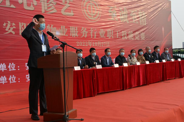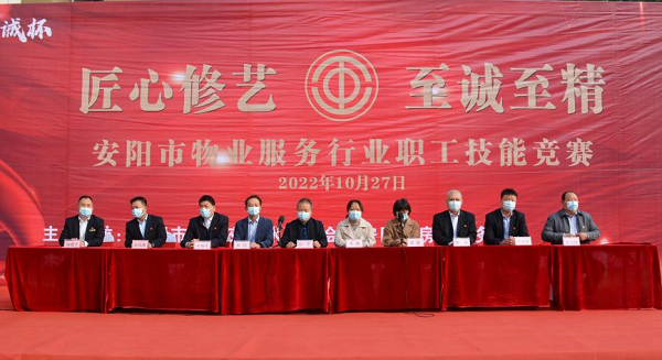 10月27日上午,安陽市物業(yè)服務(wù)行業(yè)職業(yè)技能競賽——2022年“鼎誠杯”物業(yè)服務(wù)行業(yè)職業(yè)技能競賽啟動儀式在安陽市惠澤園人才公寓舉行。市總工會、市房產(chǎn)事務(wù)中心、市總工會城建交通水利工會、市物業(yè)服務(wù)行業(yè)工會聯(lián)合會、市洹河保安服務(wù)有限責(zé)任公司黨委、安陽鼎誠物業(yè)服務(wù)有限公司、市物業(yè)管理行業(yè)協(xié)會有關(guān)領(lǐng)導(dǎo)出席啟動儀式。
