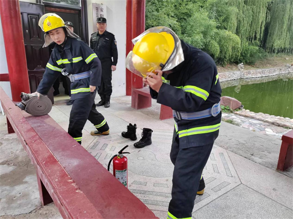 此次“大練兵”活動主要采取戶外集中演練和消防演習相結合的方式進行展示,其中演練項目包括隊列展示、擒敵拳、甩棍操等,他們動作規(guī)范、排面整齊、英姿颯爽??己私M按照文件要求按照比例對隊員進行筆試。