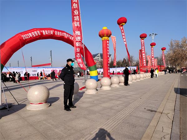1月9日,2023年安陽(yáng)市“春風(fēng)行動(dòng)”啟動(dòng)儀式暨安陽(yáng)縣就業(yè)援助招聘會(huì)在東區(qū)禮湖公園拉開帷幕,人防五大隊(duì)承擔(dān)了本次安保任務(wù)。