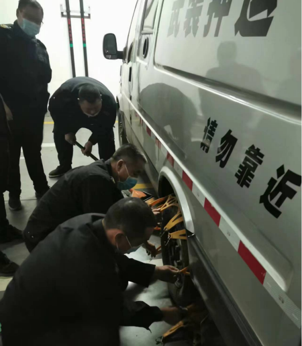 受寒潮影響,近日安陽市域?qū)⒂瓉碛暄┙禍靥鞖?。為保證出勤安全,守押十二大隊(duì)于1月13日上午對押運(yùn)車輛油路、電路、滅火器、輪胎防滑鏈等進(jìn)行全面安全檢查,組織開展車輛輪胎防滑鏈的拆裝演練,以應(yīng)對未來因幾日天氣變化而造成出勤途中的突發(fā)狀況。