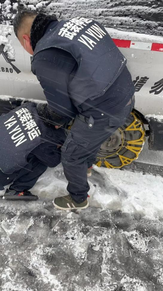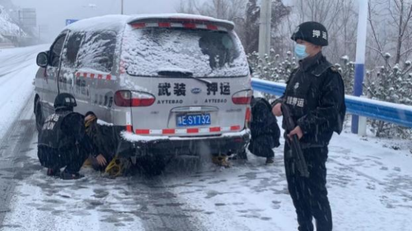早上點名前,大隊長楊中朝就通過大隊微信工作群向各行中隊傳達了指示。一是要根據(jù)路況,精準研判,行車中減速慢行,不超車,車上備足兩套防滑鏈,對于上下坡路段積雪嚴重的要及時進行安裝防滑鏈,確認安全后再行駛。二是針對銀行網(wǎng)點的路況要及時和銀行網(wǎng)點進行溝通,車輛行駛不到的要及時進行上報,通過與銀行網(wǎng)點聯(lián)系,做到延遲送達或者暫不運送,謹記安全第一。三是要根據(jù)上午運送的線路路況,對下午的出車接款時間做出調(diào)整,通過與銀行網(wǎng)點的溝通聯(lián)系,適時提前下午出車的接款時間,力爭在晚上溫度下降前安全返回。