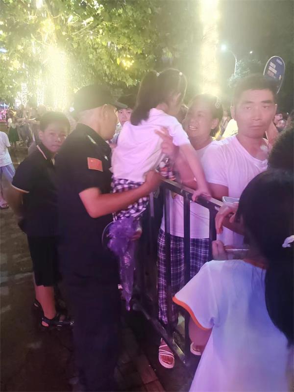 勤務實施前,大隊長王向煜和班子成員多次與甲方溝通,制訂安保方案,合理安排安保力量,明確任務分工。勤務當天下午17時,執(zhí)勤人員冒雨提前到達執(zhí)勤地點,整理隊伍分發(fā)裝備,進入執(zhí)勤崗位。面對惡劣天氣,大家毫無怨言,依然堅守崗位,依照分工認真履職。給群眾提供了力所能及的幫助。執(zhí)勤過程中,五中隊隊員趙建軍幫助走失的小女孩找到父母,使其與家人團聚。