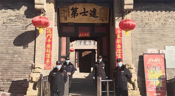 馬氏莊園位于安陽(yáng)市西部20公里的西蔣村,是清代廣東巡撫 馬丕瑤的府第,是全國(guó)重點(diǎn)文物保護(hù)單位,國(guó)家AAAA級(jí)旅游景區(qū),全國(guó)紅色旅游經(jīng)典景區(qū),河南省廉政教育基地。由于春節(jié)長(zhǎng)假前來(lái)游覽的人數(shù)劇增,人防二大隊(duì)?wèi)?yīng)約擔(dān)負(fù)了馬氏莊園節(jié)日期間安保工作。為確保任務(wù)的圓滿完成,大隊(duì)領(lǐng)導(dǎo)班子十分重視,指派李伏林中隊(duì)長(zhǎng)帶隊(duì),挑選形象好、責(zé)任心強(qiáng)的隊(duì)員參加。隊(duì)員們認(rèn)真履職維護(hù)現(xiàn)場(chǎng)秩序,為行動(dòng)不便和需要幫忙的游人提供幫助,贏得了群眾的好評(píng),展示了洹河保安良好形象。