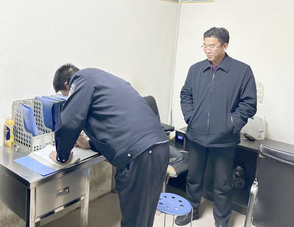 3月1日下午,內(nèi)黃縣公安局治安大隊民警李法成、馬會堂到守押九大隊檢查槍彈安全情況,大隊領(lǐng)導(dǎo)吳玉新陪同檢查。