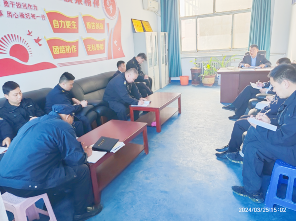 3月25日下午3:00,守押七大隊在大隊辦公室召開會議,學(xué)習(xí)公司文件并安排部署下階段的大隊工作,大隊所有副隊長、中隊長參加會議。