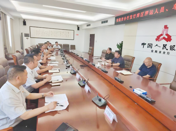 為進(jìn)一步規(guī)范守押人員及車輛在人民銀行安陽分行業(yè)務(wù)期間的管理,保障交取款業(yè)務(wù)順利進(jìn)行,5月17日,守押分公司經(jīng)理張合印、副經(jīng)理韋洪東帶領(lǐng)各大隊(duì)負(fù)責(zé)人參加人民銀行安陽分行發(fā)行庫區(qū)押運(yùn)人員、車輛管理專題會。