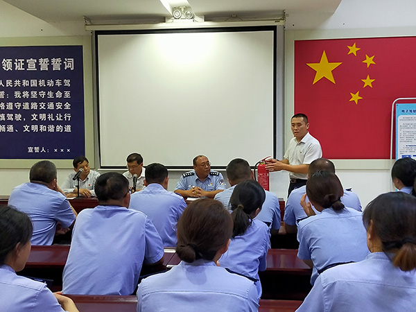 為貫徹落實(shí)公司“安全生產(chǎn)月”活動(dòng)安排,嚴(yán)防各類事故發(fā)生,營(yíng)造安全工作的良好氛圍。6月20日,鼎信公司聯(lián)合駕管科進(jìn)行消防器材學(xué)習(xí)及消防安全演練。駕管科副科長(zhǎng)李震、鼎信公司經(jīng)理朱新建及相關(guān)民警、輔警、干部職工參加活動(dòng)。