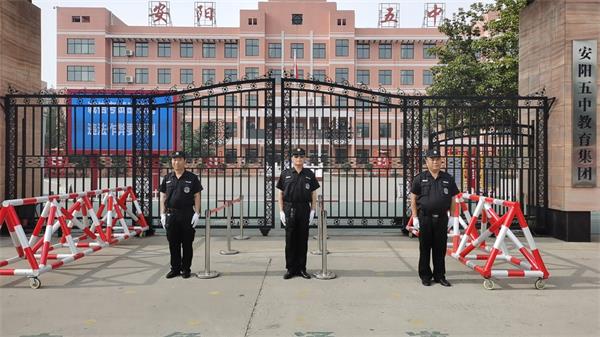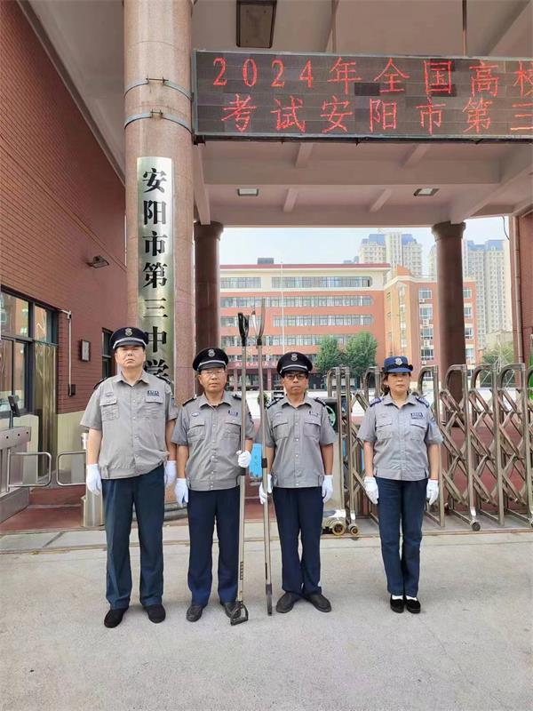 考試期間,全體執(zhí)勤隊(duì)員牢固樹(shù)立全心全意為考生服務(wù)的思想,時(shí)時(shí)處處把安全意識(shí)、安全責(zé)任放在首位,為考生營(yíng)造安全、和諧的考試環(huán)境。早上6點(diǎn)半,護(hù)考保安隊(duì)員準(zhǔn)時(shí)到崗在位,嚴(yán)格按照公司“定人、定崗、定時(shí)、定責(zé)”要求,警容嚴(yán)整,嚴(yán)陣以待,配合校方在學(xué)校門口設(shè)置警戒區(qū)域,避免無(wú)關(guān)人員靠近,做好校門口交通保障、門衛(wèi)守護(hù)、入場(chǎng)指導(dǎo)、警戒維護(hù)等……他們各司其職、認(rèn)真負(fù)責(zé)。執(zhí)勤中,涌現(xiàn)了許多好人好事,如:駐四中考點(diǎn)、一中考點(diǎn)護(hù)送輪椅上行走不便學(xué)生的保安隊(duì)員陳文斌、王鳳銀,駐三十二中考點(diǎn)撿到汽車鑰匙和家中鑰匙的隊(duì)員牛新玉等。盡管汗水打濕了衣服,但他們依然頂著酷暑堅(jiān)守在各自的崗位上,為莘莘學(xué)子保駕護(hù)航,良好的精神風(fēng)貌贏得了考生和家長(zhǎng)的一致好評(píng)。
