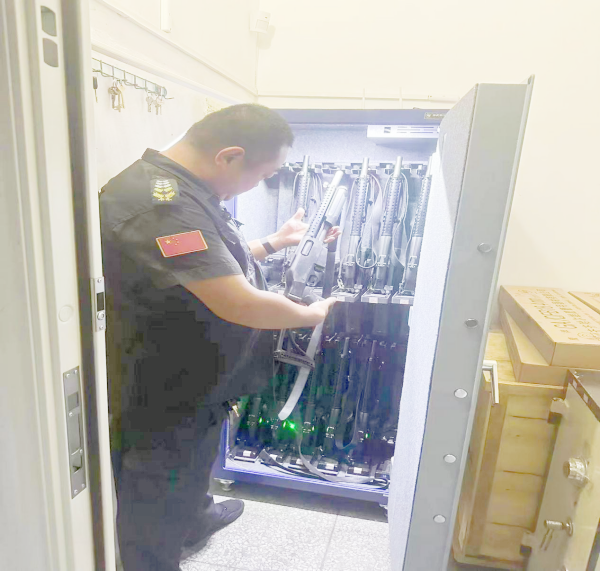 檢查中,王勇重點(diǎn)對槍彈庫的安全、領(lǐng)取存放槍支流程制度和雙人雙崗落實(shí)情況進(jìn)行檢查,并對槍支彈藥的數(shù)量及磨損情況進(jìn)行現(xiàn)場核實(shí)。針對發(fā)現(xiàn)的問題,及時(shí)對槍庫值守人員進(jìn)行批評教育,并要求立即整改。王勇強(qiáng)調(diào),槍彈安全無小事,槍庫槍支更是重中之重,任何人都不得麻痹大意;日常工作中守庫員必須提高思想認(rèn)識,從嚴(yán)管理槍彈。