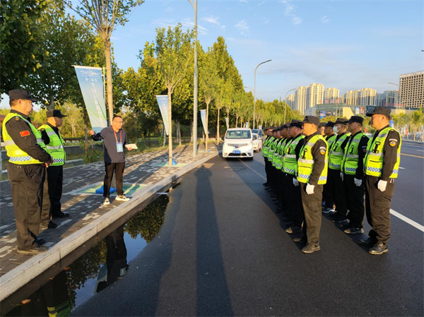 為全力做好賽事各項安保工作,活動前夕,大隊長王向煜帶領大隊領導班子對場地進行全面安全檢查,制定詳細的安保方案,并抽調班隊長及骨干力量52人次為本次賽事安全護航。