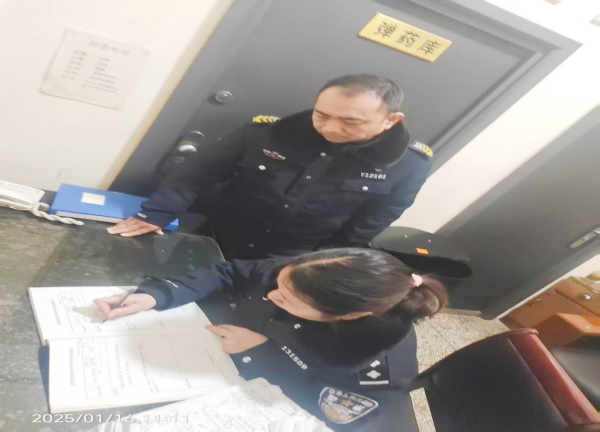 1月16日上午,安陽市龍安區(qū)太行小區(qū)派出所社區(qū)民警王靜靜到守押十二大隊相州中隊進行槍彈安全檢查,副隊長李志民全程陪同。