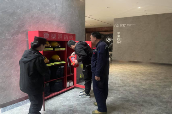 檢查期間,中隊(duì)長(zhǎng)李杰帶領(lǐng)特保隊(duì)員聯(lián)合物業(yè)人員組成檢查小組,對(duì)徽文館、博文館微型消防站內(nèi)消防設(shè)施、消防聯(lián)動(dòng)報(bào)警器、手動(dòng)報(bào)警器等設(shè)備進(jìn)行逐一檢查。測(cè)試了消火栓水槍壓力,對(duì)消防通道、安全出口、疏散通道是否暢通,應(yīng)急照明燈、疏散指示表是否配置齊全并保持完好有效,滅火器是否定期器材維護(hù)保養(yǎng)等情況進(jìn)行排查。