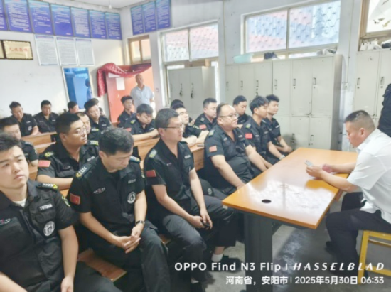 會(huì)議強(qiáng)調(diào),一是全面學(xué)習(xí)公司文件“關(guān)于做好2025年端午節(jié)放假和安全保衛(wèi)工作的通知”,做到放假不放制度。二是強(qiáng)化槍彈管理,節(jié)前開(kāi)展槍彈安全排查,槍彈監(jiān)督安全員要時(shí)刻做好監(jiān)督,槍彈領(lǐng)取交接臺(tái)賬要填寫(xiě)規(guī)范,嚴(yán)格遵守守押操作規(guī)程。三是嚴(yán)格杜絕酒后上崗,做好每日酒精測(cè)試工作。要求著裝規(guī)范和符號(hào)齊全,時(shí)刻注意工作形象。四是節(jié)日期間車輛增多,要求所有司機(jī)文明駕駛,減速慢行,尤其是鄉(xiāng)間交叉路口、學(xué)校和旅游區(qū)附近,提高工作責(zé)任心,謹(jǐn)慎駕駛。