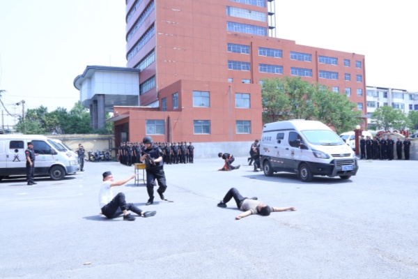 此次練兵考核項(xiàng)目主要包括隊(duì)列、交通指揮、文明禮儀崗、理論測試、守押防搶劫預(yù)案與輪胎更換、人防校園防暴預(yù)案及銀行應(yīng)急預(yù)案、消防知識問答與實(shí)際操作等科目??己诉^程中,人防分公司全體隊(duì)員精神飽滿、隊(duì)列整齊、紀(jì)律嚴(yán)明;特保大隊(duì)參訓(xùn)率較高、科目完整、士氣振奮;守押分公司各大隊(duì)基礎(chǔ)科目扎實(shí)沉穩(wěn)、精湛成熟、指揮標(biāo)準(zhǔn)、動作規(guī)范,尤其是創(chuàng)新科目刺殺操動作剛勁、氣勢雄渾,讓人耳目一新。