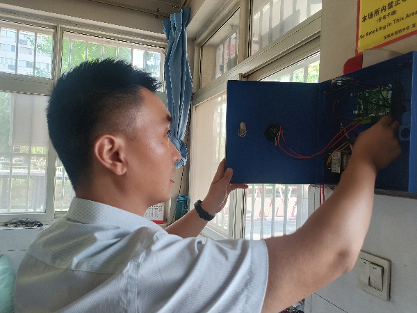 技防分公司副經(jīng)理劉帥帶領(lǐng)專(zhuān)業(yè)技術(shù)人員, 通過(guò)外觀檢查、報(bào)警響應(yīng)測(cè)試、語(yǔ)音對(duì)講功能、線路與供電檢查等,對(duì)考點(diǎn)學(xué)校一鍵報(bào)警系統(tǒng)進(jìn)行全流程、專(zhuān)業(yè)化檢測(cè)。同時(shí)對(duì)安保人員進(jìn)行專(zhuān)項(xiàng)培訓(xùn),強(qiáng)化設(shè)備操作規(guī)范與應(yīng)急處置能力,確保關(guān)鍵時(shí)刻“一鍵即應(yīng)、高效處置”。
