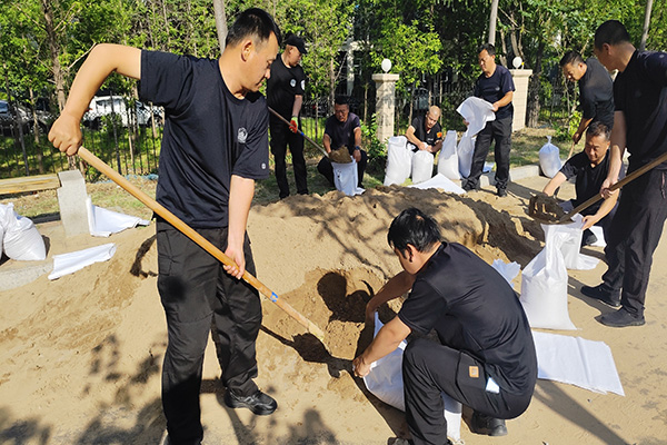在班長(zhǎng)李治國(guó)的帶領(lǐng)下,隊(duì)員們迅速進(jìn)入工作狀態(tài),現(xiàn)場(chǎng)分工清晰明確。大家各司其職,有的專(zhuān)注于裝填沙袋,有的仔細(xì)為沙袋扎口,還有的負(fù)責(zé)搬運(yùn)沙袋,整個(gè)防汛物資準(zhǔn)備工作忙碌而有序。盡管是休息時(shí)間,但隊(duì)員們始終保持著高度的責(zé)任心,以實(shí)際行動(dòng)踐行防汛使命。