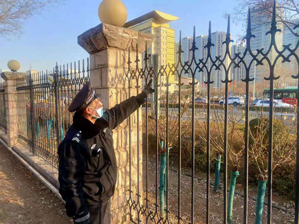 牛年春節(jié)臨近,為度過(guò)一個(gè)安寧祥和的新春佳節(jié),人防二大隊(duì)提前安排布局,做了周密的準(zhǔn)備工作。近一周來(lái),該大隊(duì)主管隊(duì)伍管理和崗點(diǎn)建設(shè)的干部,深入基層崗點(diǎn)查崗查哨,了解隊(duì)伍思想動(dòng)態(tài),就進(jìn)行節(jié)前安全隱患大排查提出具體要求,叮囑隊(duì)員站在講政治的高度,堅(jiān)守崗位,認(rèn)真履行職責(zé),把各項(xiàng)安全措施落到實(shí)處。守土有責(zé),守土盡責(zé),嚴(yán)格執(zhí)行門(mén)衛(wèi)管理制度,搞好消毒滅殺,講究個(gè)人衛(wèi)生,切實(shí)做好疫情防控工作,確保不發(fā)生任何安全責(zé)任事故和疫情防控失職行為。圖為隊(duì)員在進(jìn)行安全隱患排查。