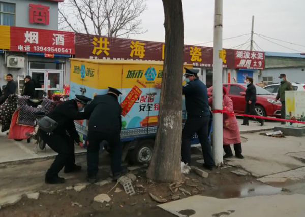 下午5時(shí)20分許,一小型貨車途徑東風(fēng)路與韓陵路交叉口。因快車道交通管制,在通過人行道時(shí),由于剛下過雨雪,地面松軟,車輪陷了進(jìn)去。在此執(zhí)勤的二大隊(duì)楊承濤、郭海軍、石麗飛和張海慶等隊(duì)員趕忙上前幫忙推車。但由于貨物太重,越陷越深,他們幫車主把貨物卸下一部分,把車推上去,又把貨物給他裝上車。保安員的善行義舉,受到車主和群眾的好評(píng)。
