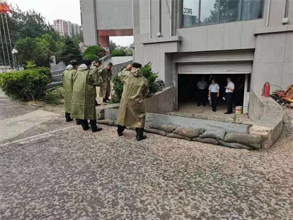 隊員們快速穿上雨具,對阻塞排水口進行疏通,并將一袋袋沙袋堵住各個入口,防止雨水滲進入地下金庫、車庫。與此同時,隊員組織營業(yè)大廳內人員的疏散和撤離到安全地帶。