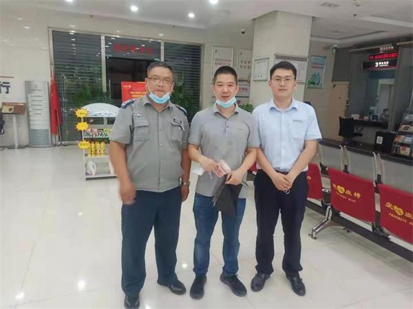 6月30日,人防四大隊派駐中國工商銀行義烏支行保安隊員馬獻群拾金不昧受到失主和客戶的好評。