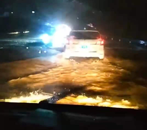 晚6點(diǎn),突接中原銀行湯陰亞新ATM機(jī),被淹告急,為了挽救人民財(cái)產(chǎn),中原銀行隊(duì)員方志林、白亮、魏鑫冒著風(fēng)險(xiǎn)驅(qū)車(chē)前往,任務(wù)就是為了把淹沒(méi)在洪水中ATM里面的錢(qián)拉回來(lái)。前往的路上,無(wú)路可走,到處汪洋,司機(jī)白亮克服困難,涉水而行,晚上8點(diǎn),趕到湯陰,走至湯陰火車(chē)站附近往南處的時(shí)候,路截?cái)嗔?,水深到胸部,但距離ATM還有兩公里的路程,為了完成任務(wù),為了挽救人民財(cái)產(chǎn),請(qǐng)示領(lǐng)導(dǎo)后,決定涉水走路前進(jìn)。方志林、魏鑫舉著槍和銀行人員手拉手冒著雨倘著水艱難的走到了ATM點(diǎn),往返四公里,用將近兩個(gè)小時(shí)的時(shí)間完成了任務(wù)。因?yàn)橛晏炻飞锨闆r變化太大,為了給在湯陰的車(chē)探明路況,晚上九點(diǎn),大隊(duì)長(zhǎng)李艷軍和劉靜雨開(kāi)車(chē)前往湯陰,尋找可行路線,歷經(jīng)重重困難,于10點(diǎn)左右兩車(chē)匯合,由于提前探明路況,返程時(shí)沒(méi)有遇到很大困難,返回到中原銀行時(shí),是晚上11點(diǎn)半左右。